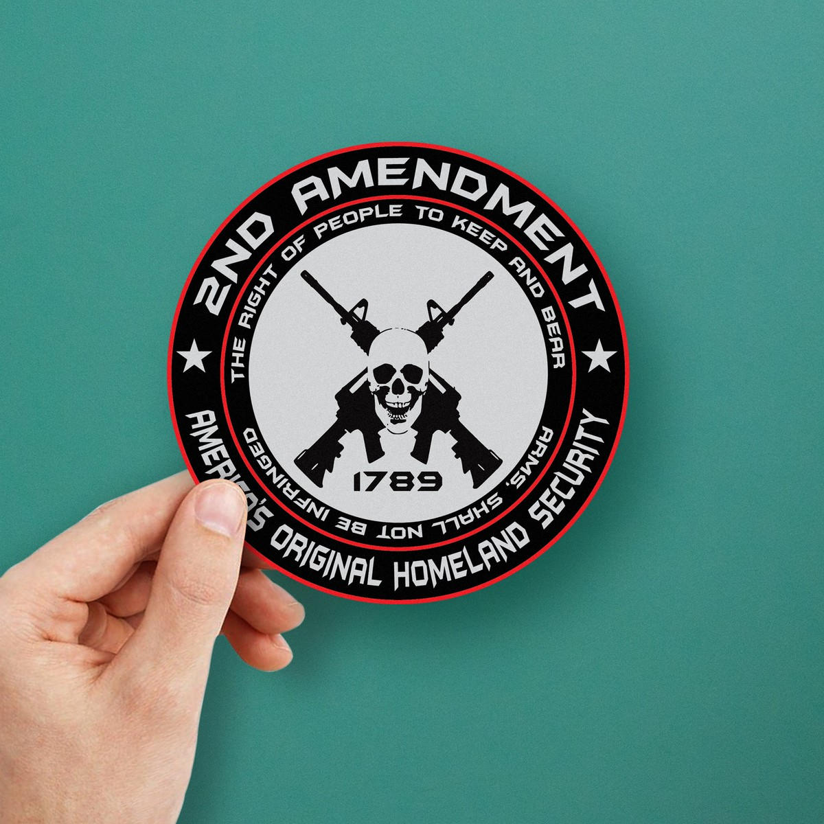 2nd Amendment Sticker 🔫 Bold 2nd Amendment Design: This 2nd Amendment sticker proudly showcases the text “America’s Original Homeland Security” with a striking skull and guns design, perfect for those who stand for gun rights and freedom. 🔫
