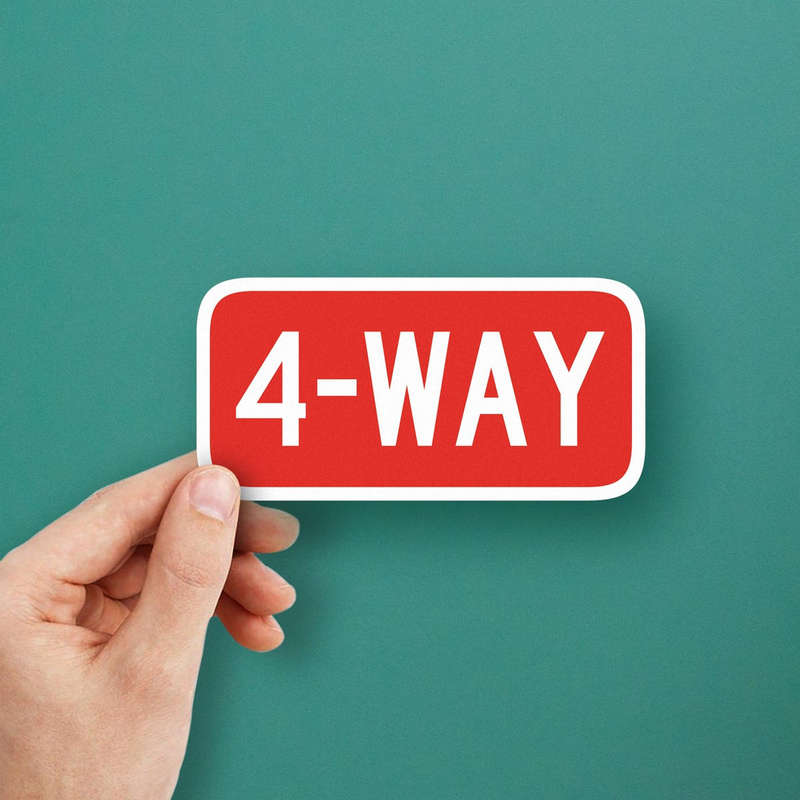 “4🚦 Bold Traffic Design: This “4-Way” sticker features a clear and striking red and white design inspired by traffic signs. Perfect for adding a functional and stylish touch to your gear. 🚦
