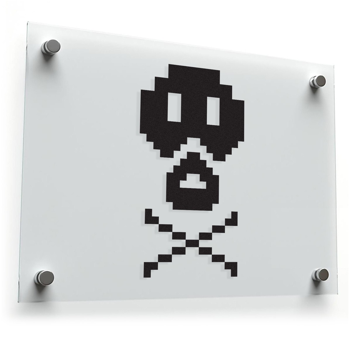 Express your passion for retro gaming with this 8-bit pixel skull and crossbones sticker. This meticulously designed decal captures the essence of classic video game graphics, featuring a pixelated skull and crossbones design. Made from high-quality, weatherproof vinyl, this decal is perfect for adding a touch of retro gaming charm to your laptop, car, wall, or any smooth surface. Easy to apply and remove, this sticker is a must-have for gamers and pixel art enthusiasts. Available in Multiple Size Options. The image features a black 8-bit pixel art design of a skull and crossbones against a white background. The skull is represented by a square shape with two white rectangles for eyes, and the crossbones are formed by two diagonal lines of pixels. The design is simple yet iconic, reminiscent of classic video games.