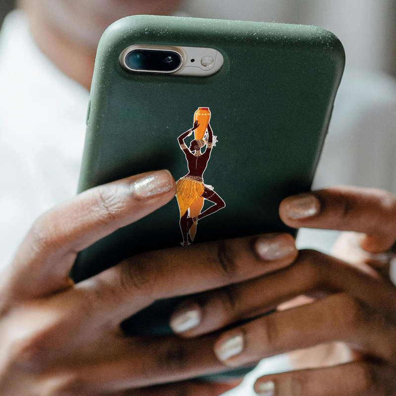 African Water Bearer Sticker 🌍 Elegant Tribal Design: Celebrate the grace and strength of African culture with this water bearer sticker, featuring a stunning silhouette and vibrant orange accents. 🌍
