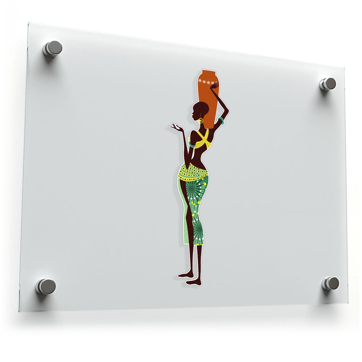 Celebrate cultural elegance with this African woman silhouette sticker, showcasing a graceful figure carrying a traditional jar and adorned in vibrant green and orange patterns. Perfect for cars, laptops, water bottles, or home decor, this durable vinyl decal is weatherproof and fade-resistant, ensuring long-lasting beauty indoors or outdoors. Its intricate design and vivid colors make it an excellent choice for adding a unique and cultural touch to your belongings. Easy to apply and remove without residue, it’s a hassle-free option for redecorators or renters. Available in multiple sizes, this sticker is both artistic and meaningful.