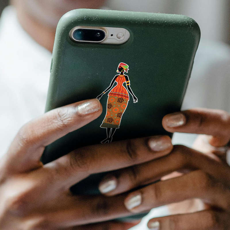 Celebrate cultural elegance with this African woman silhouette vinyl decal, featuring bold patterns and vibrant colors inspired by traditional tribal dress. The intricate floral designs in orange, green, and red tones bring warmth and sophistication to laptops, walls, or any space in need of a cultural touch. Made from durable, weatherproof vinyl, this sticker withstands the elements while maintaining its vivid colors. Easy to apply and residue-free upon removal, it’s perfect for indoor or outdoor use. Available in multiple size options, this decal makes a thoughtful gift for lovers of African-inspired art and cultural decor.