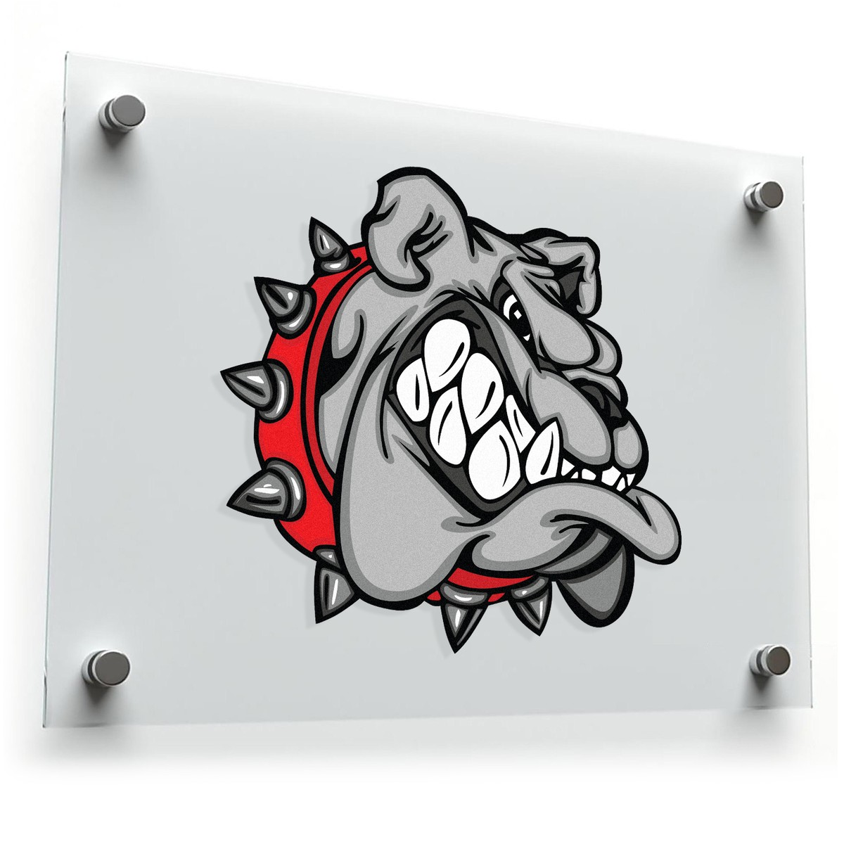 Bring the power of a fierce mascot to your belongings with this aggressive bulldog vinyl sticker. Featuring a snarling bulldog with a spiked collar, this tough decal is perfect for decorating your car, laptop, or gym gear. Made from durable, waterproof vinyl, this sticker is built to withstand outdoor conditions while maintaining its bold and vibrant appearance. Its easy peel-and-stick application makes it simple to apply to any smooth surface, while its fade-resistant design ensures long-lasting use. Whether you’re an athlete, dog lover, or just appreciate a bold aesthetic, this bulldog sticker adds energy and attitude to your gear.