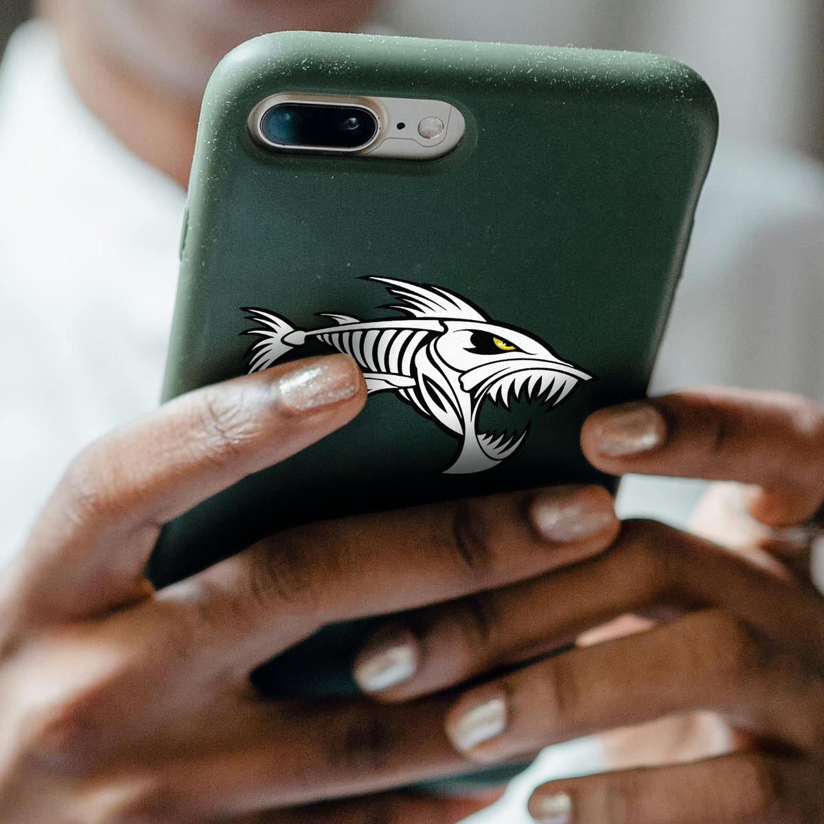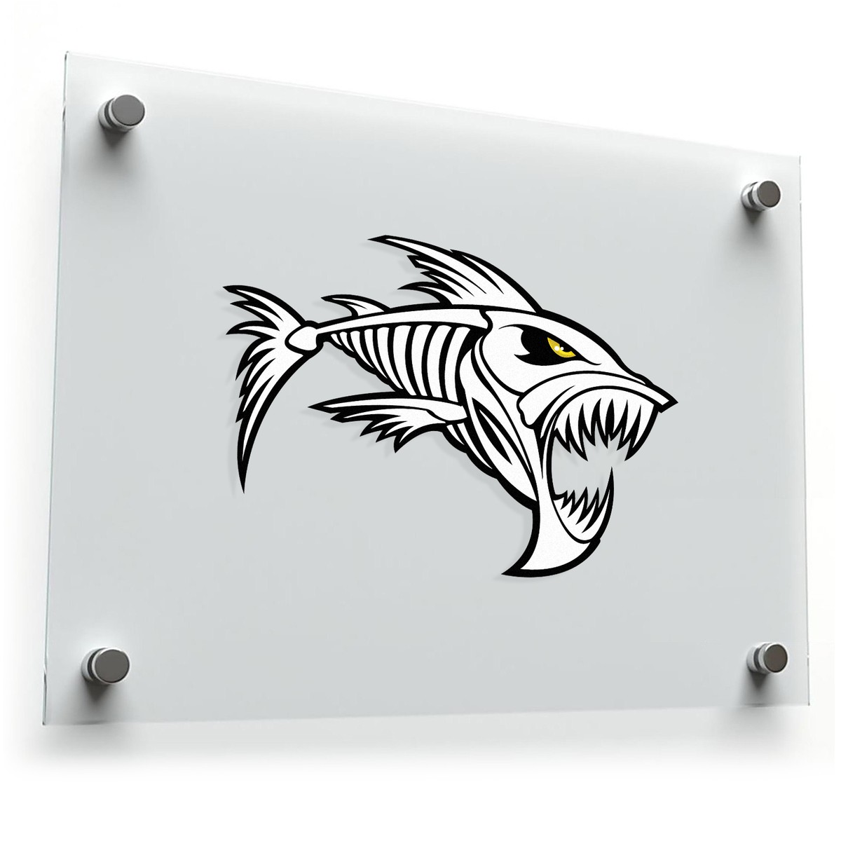 Add a touch of fierce marine style to your belongings with this aggressive fish skeleton decal. The sharp and detailed design features a bold fish skeleton, perfect for personalizing cars, boats, and other gear. Made from high-quality vinyl, this durable sticker can handle the elements, ensuring long-lasting performance both indoors and outdoors. The striking black and white design adds a unique and edgy look to any surface. Easy to apply and remove without residue, this decal is available in multiple size options, making it a versatile choice for anyone who loves marine life and bold designs.