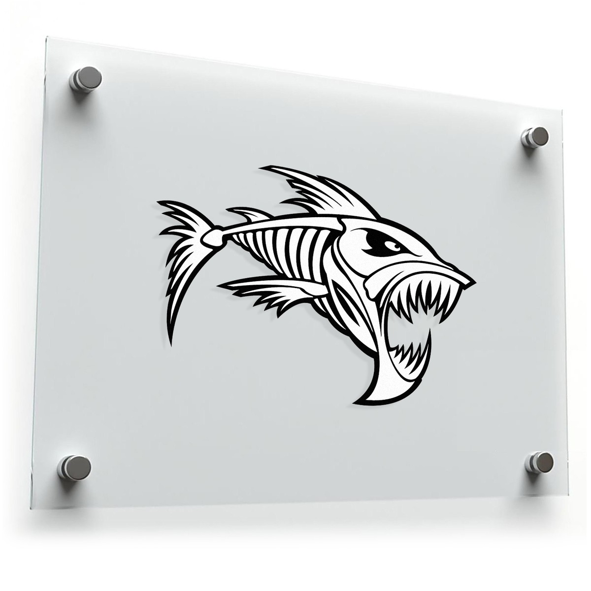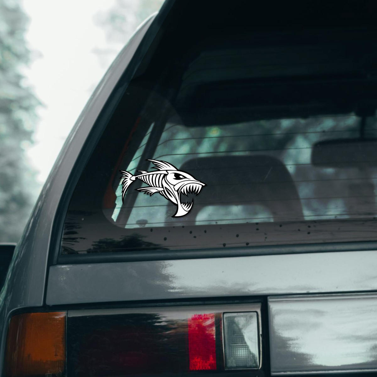 Aggressive Fish Skeleton Vinyl Decal 🐟 Bold Design for Anglers: This aggressive fish skeleton decal makes a striking statement on any boat, car, or truck, perfect for those who love fishing and the open waters. 🐟
