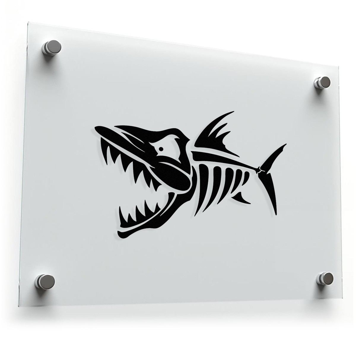 Show your passion for fishing with this aggressive fish skeleton vinyl sticker. Featuring a bold and fierce design, this sticker is ideal for adding a unique touch to your car, boat, or outdoor gear. Made from durable, weatherproof vinyl, it can withstand outdoor elements like rain and sun while maintaining its vibrant appearance. The easy-to-apply and removable design allows for smooth customization without worrying about sticky residue.