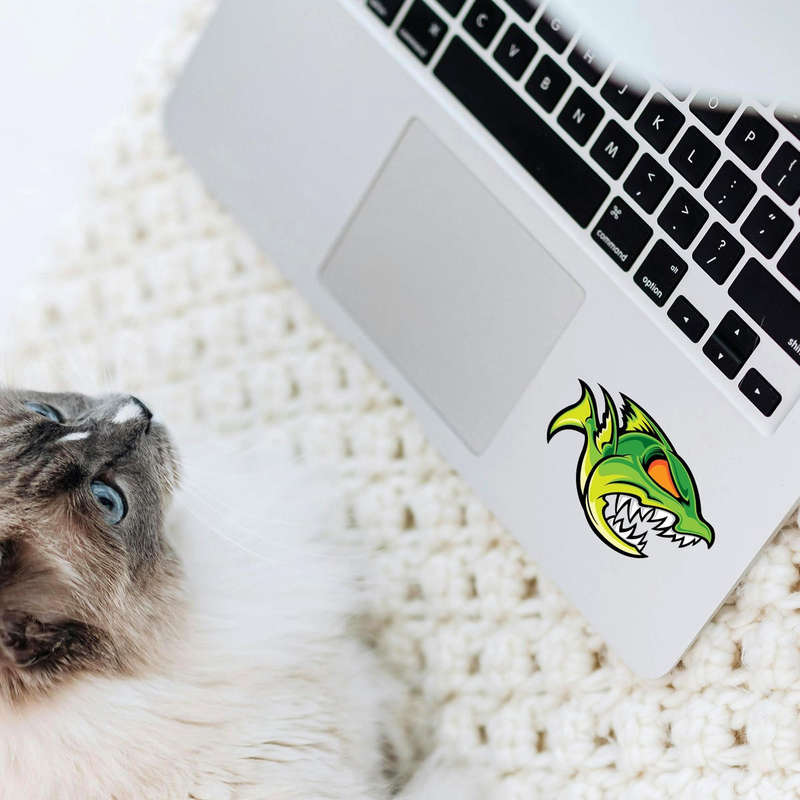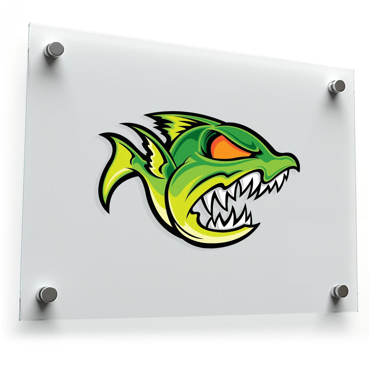 Bring an aggressive edge to your gear with this bold green fish decal, featuring a fierce fish with sharp teeth and striking orange eyes. Perfect for decorating boats, cars, laptops, and fishing equipment, this vinyl sticker is crafted from durable, weather-resistant material that’s ideal for outdoor use. Its intense design captures attention and suits those who enjoy a rugged, aquatic aesthetic. Easy to apply and residue-free upon removal, this decal is available in multiple sizes, allowing you to personalize your belongings with a tough, marine-inspired touch.