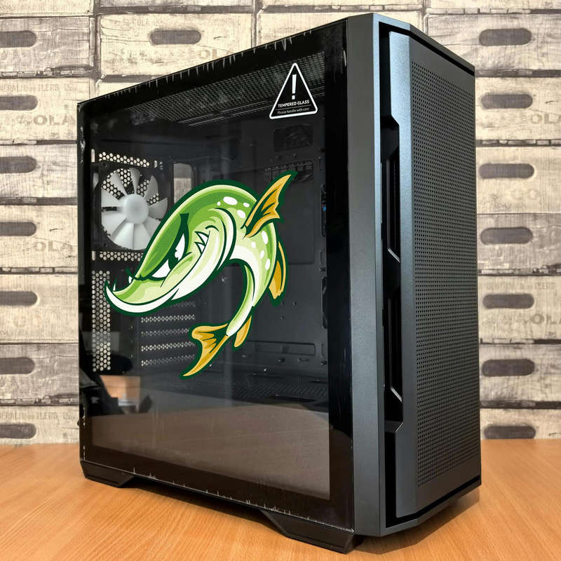 Aggressive Pike Fish Cartoon Sticker 🐟 Fun Cartoon Pike Design: This cartoon pike sticker features a fierce green pike with an intense expression, perfect for adding a bold and playful touch to any surface. 🐟
