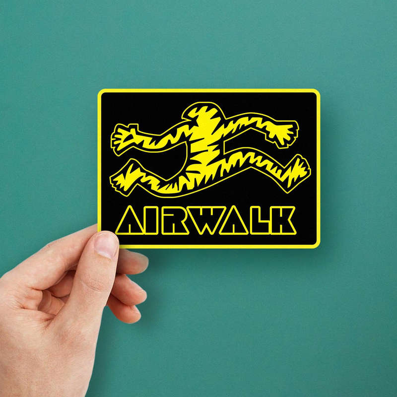 Celebrate bold and energetic design with this Airwalk sticker, featuring a dynamic yellow jumping figure set against a black background. This vibrant vinyl decal is weatherproof and fade-resistant, making it perfect for cars, laptops, water bottles, or any flat surface. Its striking yellow and black contrast captures attention, bringing a touch of skate culture or sporty creativity to your items. Easy to apply and remove without residue, this durable sticker is ideal for anyone looking to add energy and style to their personal belongings. Available in multiple size options to suit your needs.