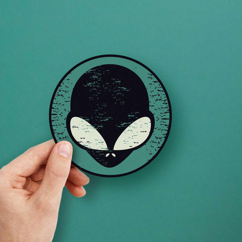 Explore the cosmos with this vintage alien head sticker, featuring a distressed design in bold green and black hues that evokes the mystery of outer space. Perfect for laptops, walls, or personal items, this durable vinyl decal is a must-have for sci-fi fans and UFO enthusiasts. Its fade-resistant material ensures a long-lasting look, while its easy application makes it a versatile choice for renters or creative decorators. Whether as a gift or a unique addition to your collection, this sticker offers a touch of interstellar intrigue. Available in multiple sizes, it adapts seamlessly to your decorative needs.
