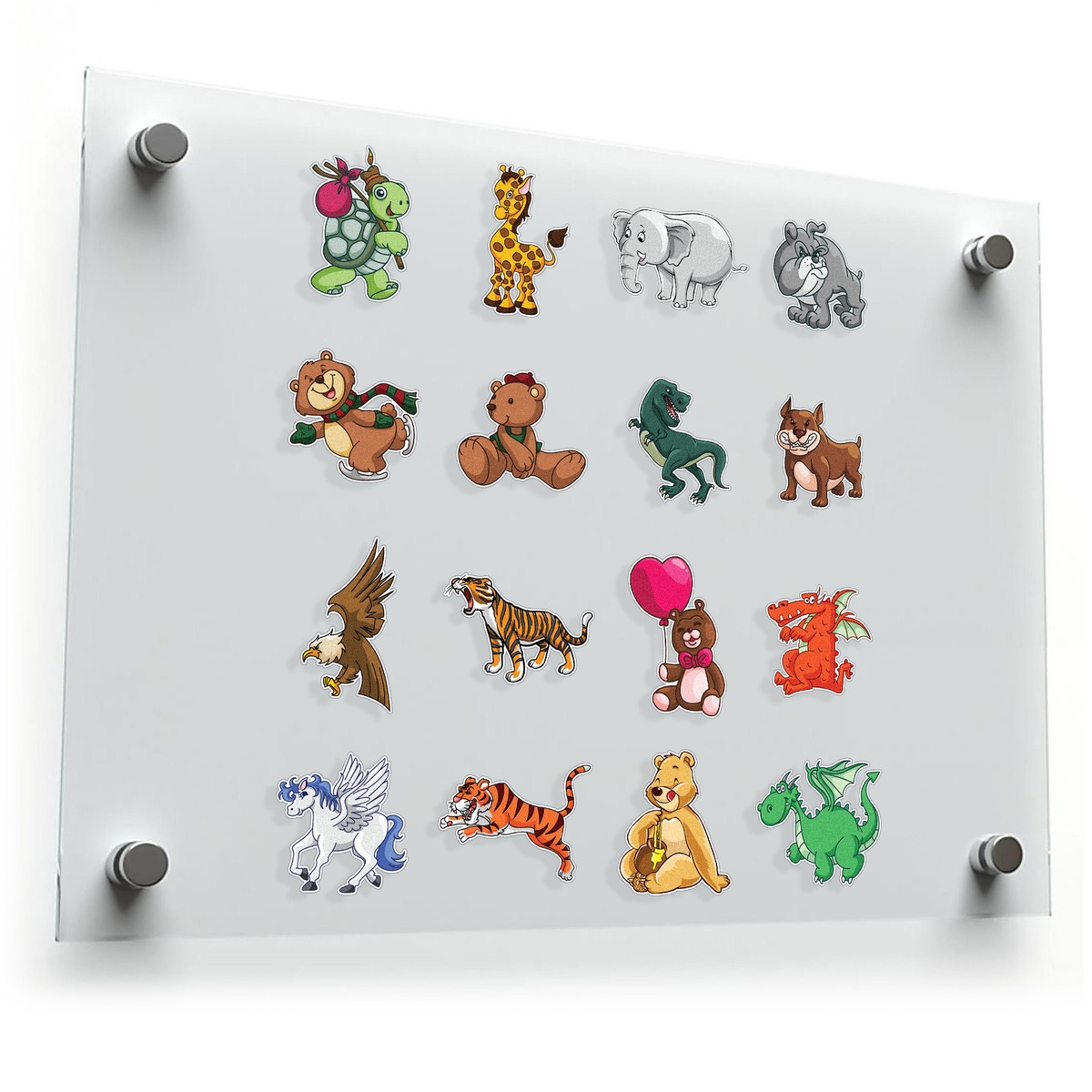 Add a touch of fun to your everyday items with this set of 16 animal cartoon stickers. Featuring a variety of adorable designs, including giraffes, tigers, dragons, and teddy bears, these decals are perfect for decorating laptops, scrapbooks, or kids’ rooms. Made from durable, weatherproof vinyl, these stickers resist fading and peeling, ensuring long-lasting use. Their vibrant colors and detailed artwork make them a standout addition to any collection. Easy to apply and remove without leaving sticky residue, this sticker set is a fantastic choice for kids, teachers, or anyone with a creative spirit.