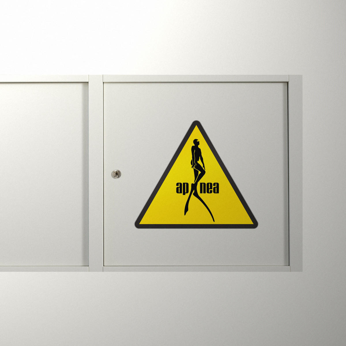 Apnea Diver Warning Vinyl Sticker 🌊 Bold Apnea Diver Design: Featuring a striking silhouette of a diver and the word “apnea” in bold letters, this triangle warning sticker adds a distinctive touch to cars, laptops, and diving gear. 🌊