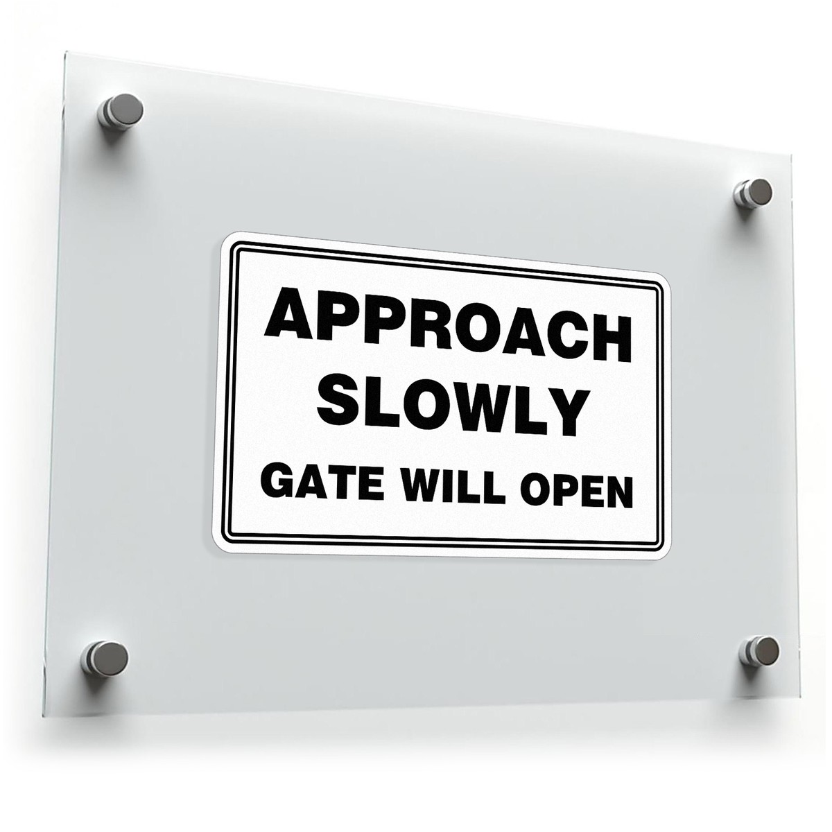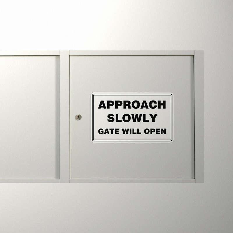 Promote safe and efficient traffic flow with this “Approach Slowly Gate Will Open” sticker. Designed with bold black text on a white background, it ensures high visibility and clear communication for drivers entering gated areas. Made from durable vinyl, this weather-resistant decal offers long-lasting performance in outdoor environments. It adheres easily to surfaces like metal gates, walls, or posts, providing a professional, bubble-free installation. Ideal for residential, commercial, or industrial settings, this safety sign is available in multiple sizes to meet various needs, ensuring smooth operations and preventing accidents.