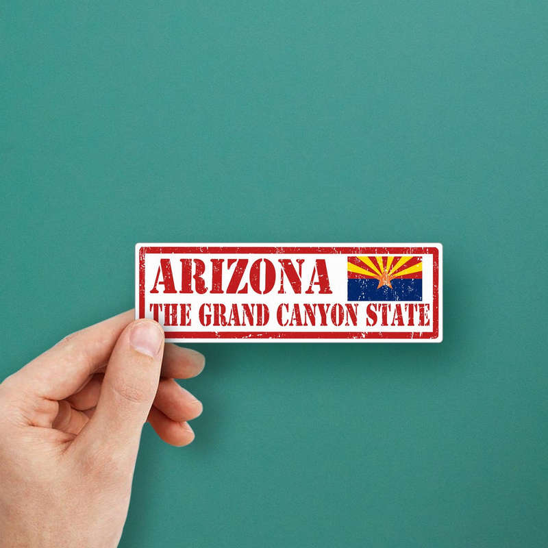 Arizona “The Grand Canyon State” Sticker 🏜️ Celebrate Arizona Pride: Showcase your love for the Grand Canyon State with this bold and rustic Arizona sticker, featuring the iconic state flag and slogan. 🏜️