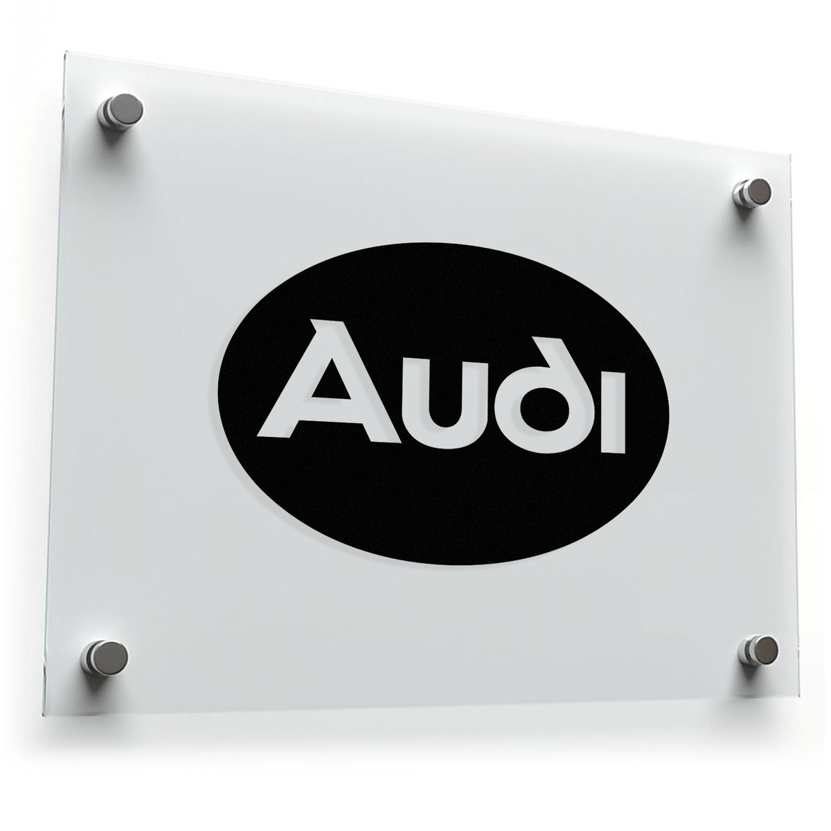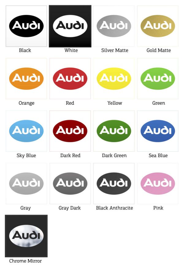 Showcase your appreciation for automotive elegance with this Audi logo oval sticker. This white decal on a black oval background features the iconic four-ring Audi emblem, a symbol of German engineering and design. Made from durable vinyl, this sticker is perfect for personalizing your car, laptop, hydro flask, or any other smooth surface. The classic design and weatherproof material ensure that this sticker will last, adding a touch of premium automotive flair to your belongings wherever you go. Available in Multiple Size Options. This decal is a great way to express your love for the Audi brand.