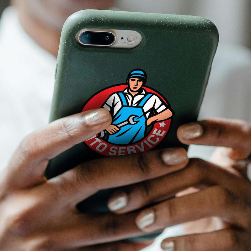 Show your pride in automotive service with this Auto Service mechanic sticker, featuring a confident mechanic in blue overalls holding a wrench, surrounded by a bold red circle with “Auto Service” text. Made from durable, weather-resistant vinyl, this decal is designed to maintain its vivid colors, making it ideal for both indoor and outdoor settings. Perfect for cars, toolboxes, and garage walls, this sticker offers a professional and spirited addition to any space. Available in multiple sizes, it’s a fantastic choice for auto shops and car enthusiasts alike, bringing a dynamic look to any automotive setting.