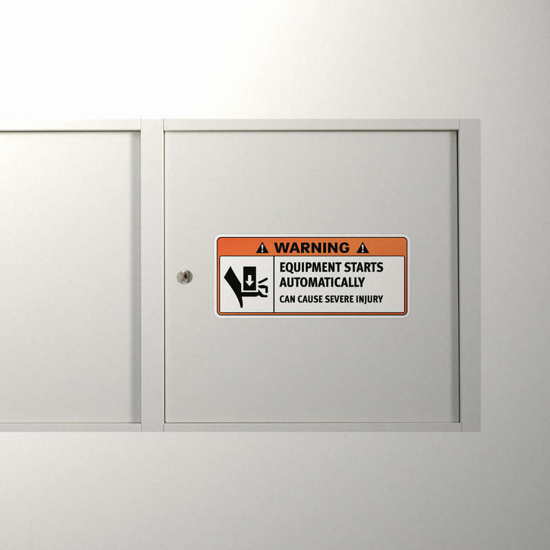 Enhance workplace safety with this high-visibility “Equipment Starts Automatically, Can Cause Severe Injury” warning sticker. Designed in bold colors with a clear and attention-grabbing layout, this decal effectively communicates caution around automated machinery. Crafted from durable, long-lasting materials, it resists wear, ensuring the warning remains intact and noticeable in demanding conditions. Its strong adhesive makes it easy to apply on various surfaces, indoors and outdoors. Available in multiple size options, this decal is essential for any industrial or workplace setting prioritizing hazard awareness and employee safety.