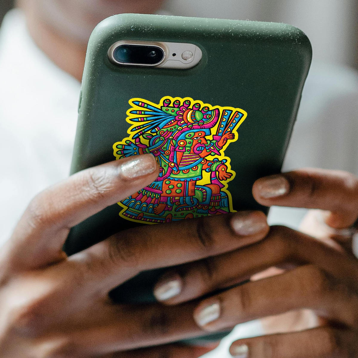Aztec Warrior Sticker 🌟 Vibrant Aztec Warrior Design: This bold and colorful sticker features an intricate Aztec warrior, adding a unique and eye-catching touch to your laptop, car, or home decor. 🌟