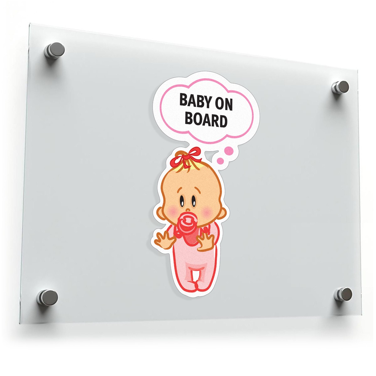 Add a touch of charm and safety to your family car with this “Baby on Board” vinyl sticker. Featuring an adorable baby illustration in pink with a pacifier and bow, this sticker is both functional and stylish. Designed to alert drivers of your precious cargo, it’s made from durable weatherproof vinyl to withstand fading and harsh conditions. Easy to apply and remove, it’s the perfect solution for keeping your car window neat while ensuring safety. Available in multiple sizes, this decal is a great gift for new parents, combining practicality with a touch of cuteness.