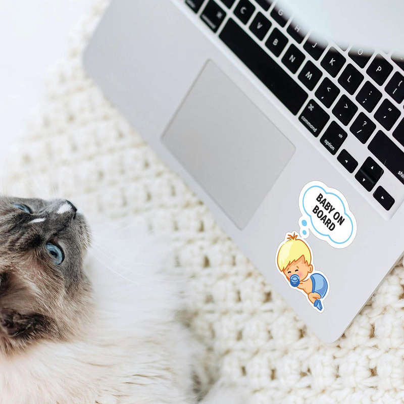 Drive with confidence and style with this Baby on Board Sticker, featuring a cute sleeping baby design and a bright “Baby on Board” message. Made from durable vinyl, this safety sticker withstands rain, sunlight, and everyday wear, ensuring long-lasting visibility. Ideal for car windows, bumpers, or any smooth surface, it’s easy to apply and remove without residue. Perfect for new parents or as a baby shower gift, this sticker not only enhances safety on the road but also adds a charming touch to your vehicle. Available in multiple sizes, it’s a must-have for families on the go.