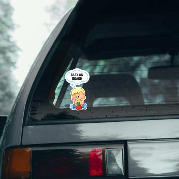 Keep your little one safe with this adorable “Baby on Board” sticker, featuring a bright and cheerful design of a baby holding a toy. The bold text ensures visibility, helping alert other drivers to your precious cargo. Perfect for family cars, this durable vinyl decal is built to withstand weather conditions, making it suitable for long-term outdoor use. With its easy application and residue-free removal, it’s a convenient way to add both safety and charm to your vehicle. Available in multiple size options, this sticker is a must-have for parents who want to drive with confidence and style.