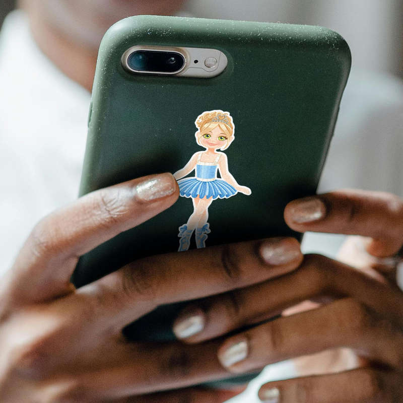 Ballerina Vinyl Sticker 💃 Charming Ballerina Design: This elegant sticker features a graceful ballerina in a blue tutu with intricate details, including a tiara and ballet slippers, perfect for dance enthusiasts and creative projects. 💃