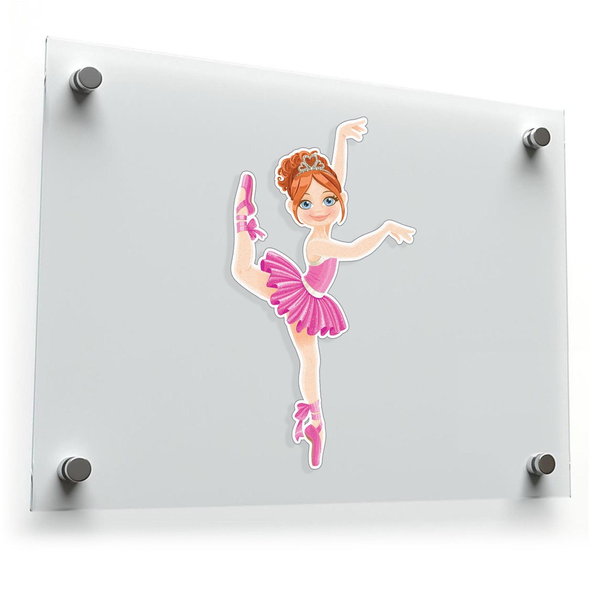 Celebrate the beauty and elegance of ballet with this Ballet Princess sticker. Showcasing a redhead ballerina in a sparkling pink tutu and tiara striking a graceful pose, this decal is perfect for personalizing laptops, notebooks, walls, or children’s rooms. Crafted from premium-quality, fade-resistant vinyl, it ensures vibrant colors and long-lasting durability. The peel-and-stick design allows for easy application and residue-free removal, making it simple to add a touch of whimsy and charm to your decor. With multiple size options available, this sticker is an enchanting addition to any ballet lover’s space or accessories.
