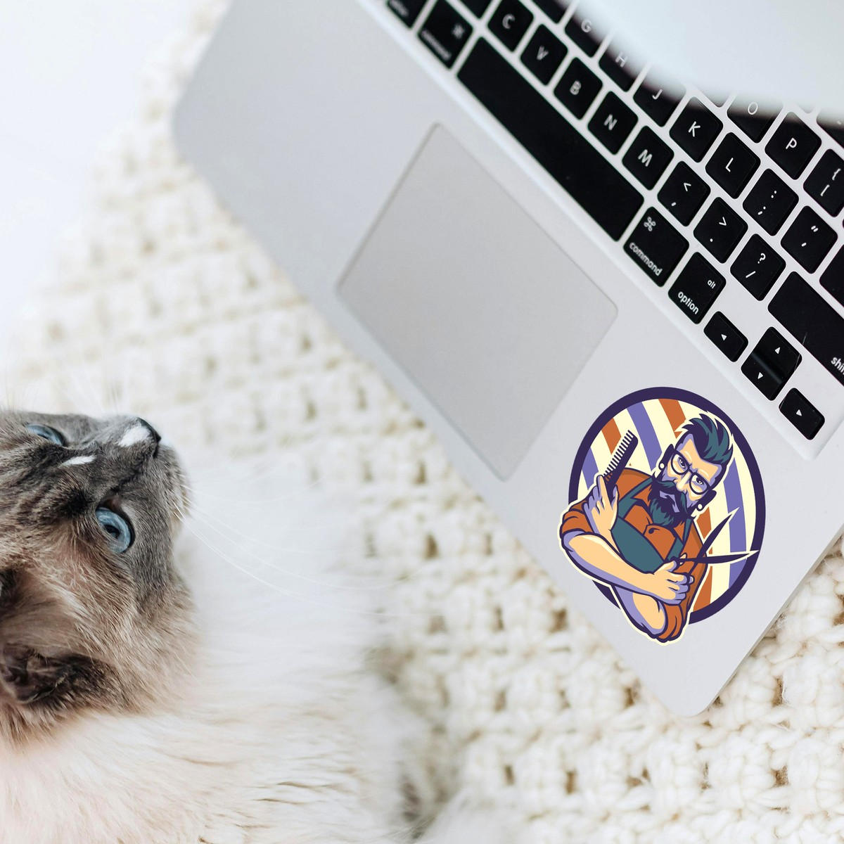 Elevate your barbershop or salon with this bold and stylish barber shop icon sticker. Featuring a retro design with scissors and a comb, this vinyl decal is perfect for adding character to your business. Made from durable, waterproof vinyl, it is designed to withstand outdoor conditions and indoor wear. The easy application and clean removal allow for versatile placement on windows, walls, or toolboxes without leaving residue. Available in multiple sizes, this sticker is the perfect touch to customize your shop or grooming space, making it both professional and inviting.