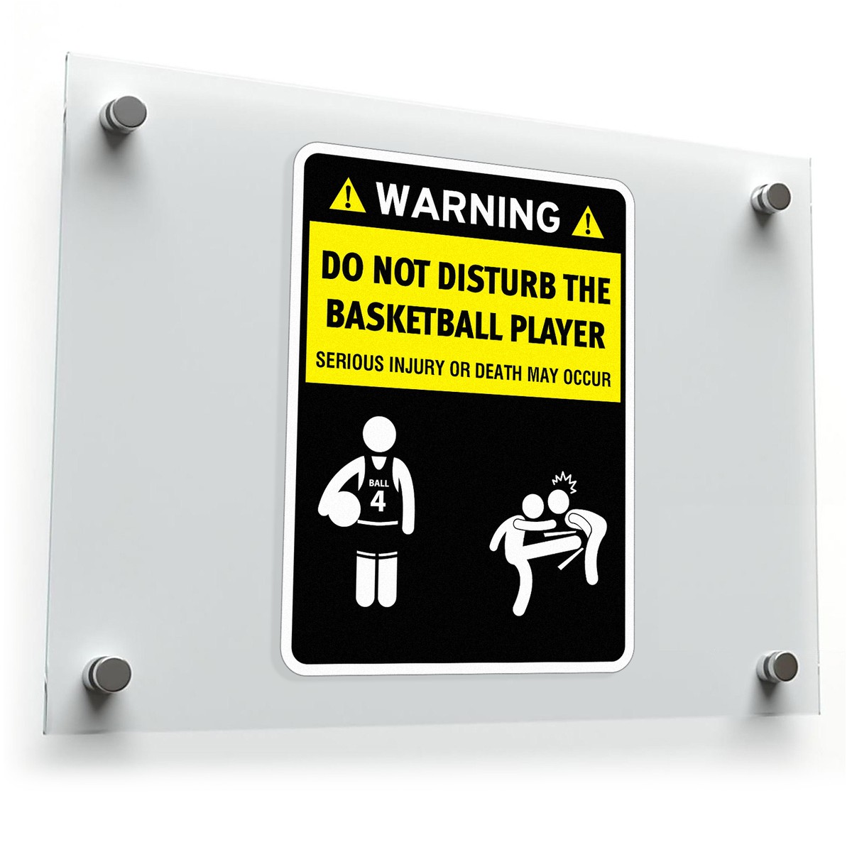 Warn everyone to respect your focus on the court with this bold “Do Not Disturb the Basketball Player” vinyl decal. Featuring high-visibility yellow and black graphics, this durable and weatherproof sticker is perfect for use on cars, gym doors, or personal gear. Made from premium vinyl, it ensures long-lasting use without fading or peeling, even in outdoor conditions. With its playful design and strong adhesive backing, this sticker is ideal for basketball lovers who want to make a statement while keeping distractions at bay. Available in multiple sizes to suit your needs.