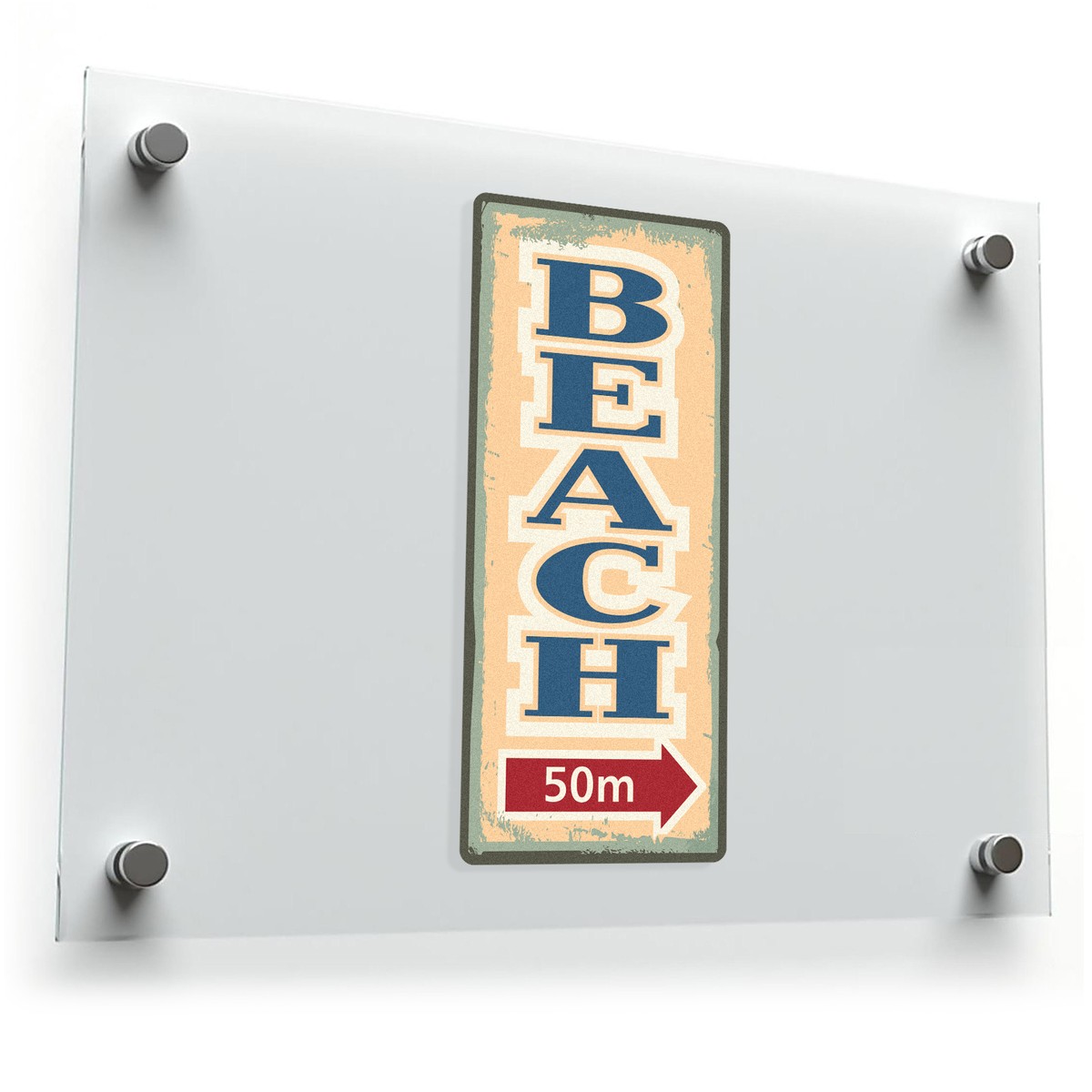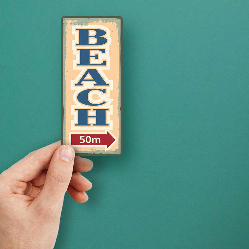 Add a touch of coastal charm to your space with this retro beach sign sticker featuring the bold “BEACH 50m” design and directional arrow. Perfect for cars, walls, laptops, or outdoor areas, this vintage-inspired decal brings a relaxed, beachy vibe anywhere it’s placed. Made from durable, weatherproof vinyl, it resists fading, water, and scratches for long-lasting quality indoors and outdoors. With bubble-free application and residue-free removal, this decal is simple to use, making decorating easy and stress-free. Available in multiple sizes, this beach-themed sticker is ideal for DIY projects, room decor, or a thoughtful gift for beach lovers.