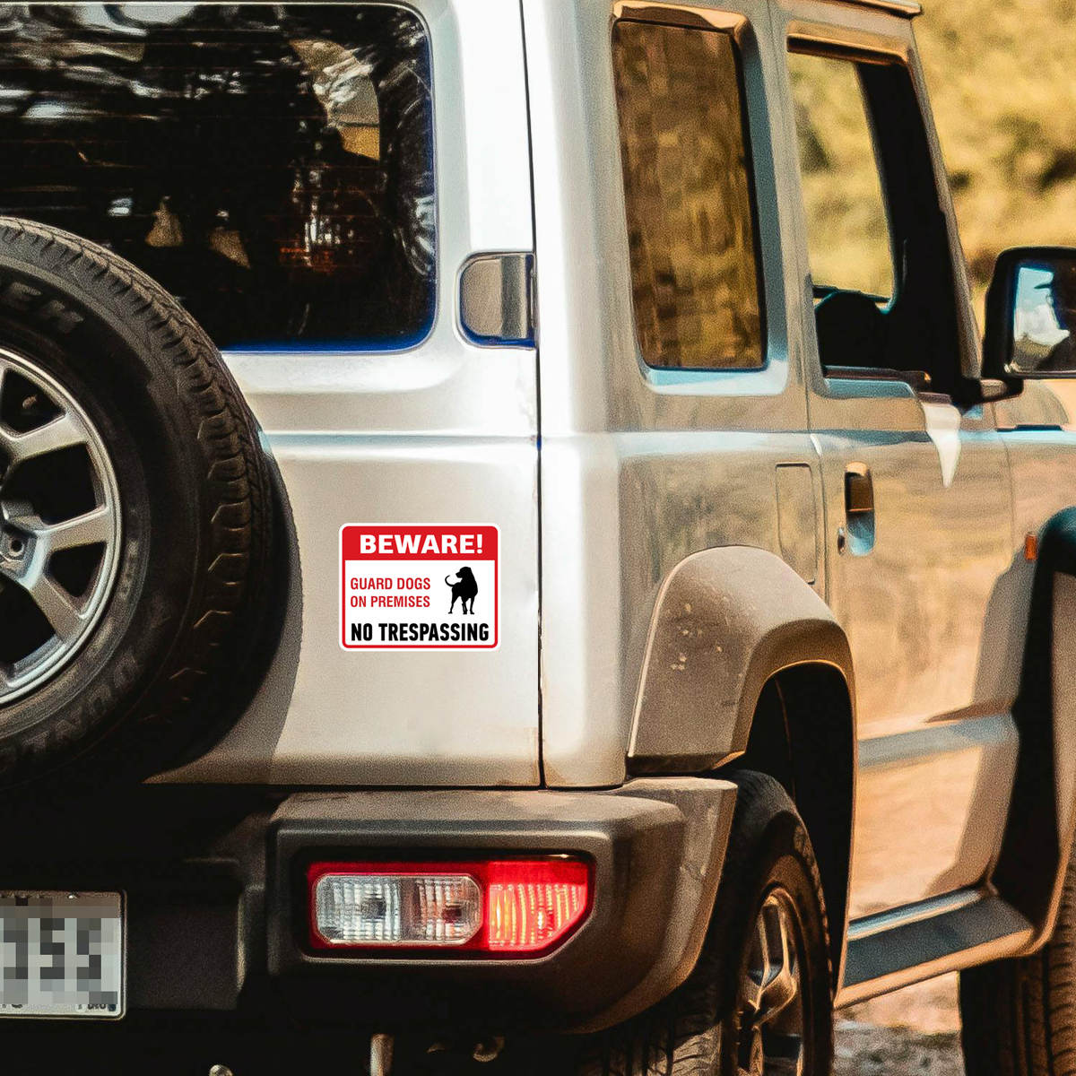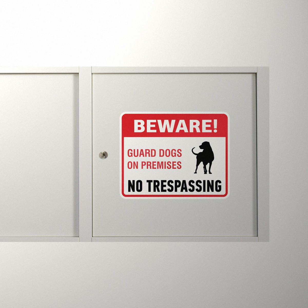 Boost the security of your property with this bold “Beware Guard Dogs On Premises” vinyl sticker. Designed to clearly warn potential trespassers, this durable decal is perfect for gates, fences, or doors. Made from weather-resistant vinyl, the sign maintains its vibrant colors and effectiveness even under harsh outdoor conditions. Available in multiple sizes, including the standard 8×10 inches, this warning sticker is easy to apply and provides a powerful security message to keep unauthorized individuals at bay. Keep your property safe with this highly visible no-trespassing sign.
