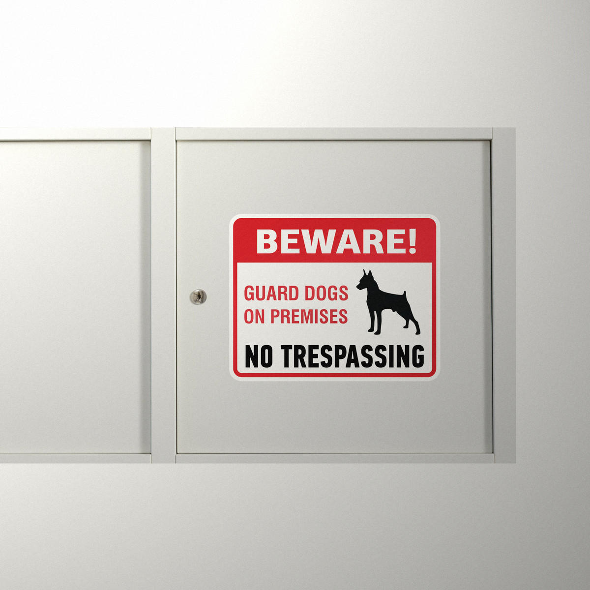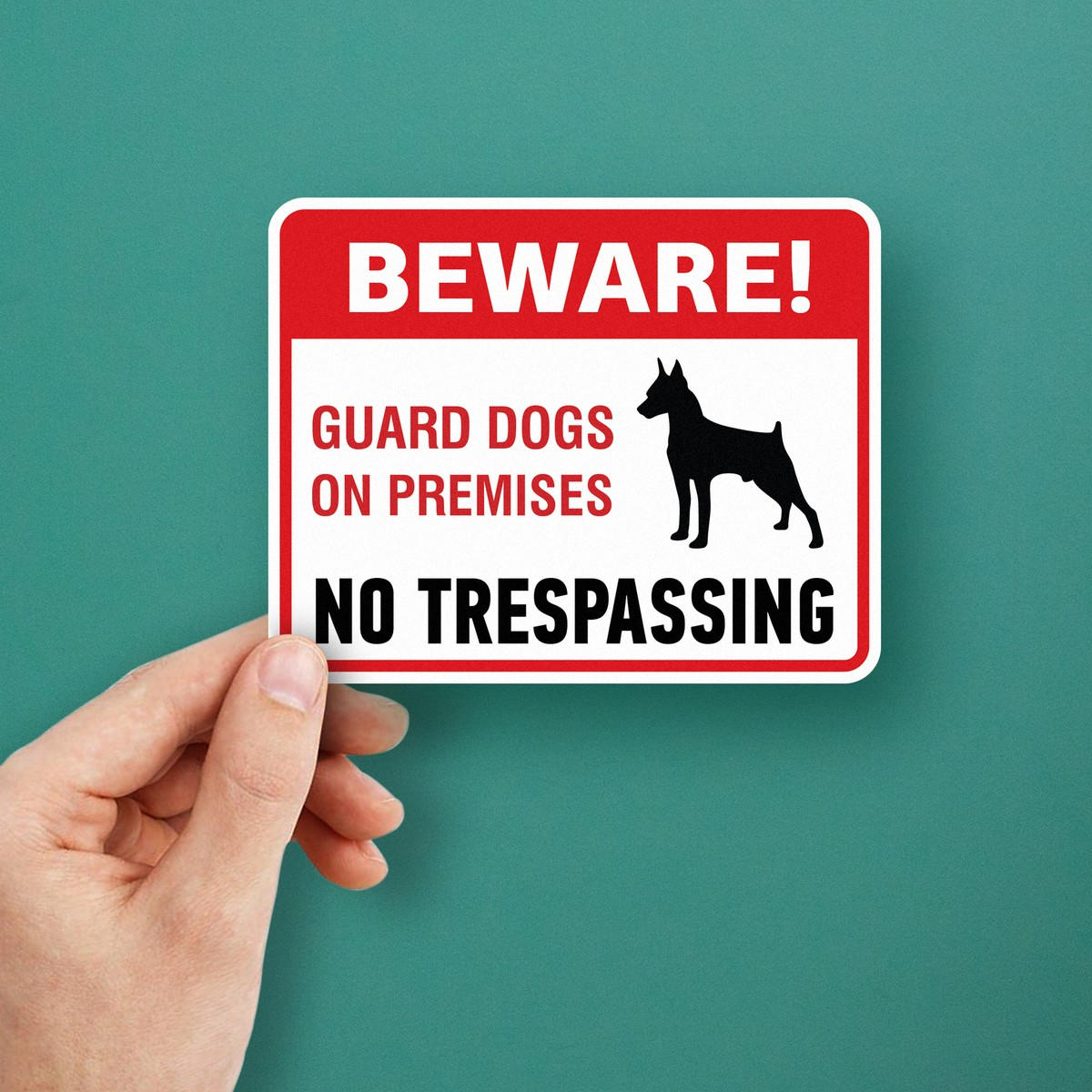 Upgrade your home or business security with this bold “Beware of Guard Dogs” sticker. Designed to deter trespassers, this highly visible warning sign adds an extra layer of protection to your property. Made from durable, waterproof vinyl, it’s built to withstand the elements, making it ideal for outdoor use on gates, fences, windows, or doors. Easy to apply and available in multiple size options, this sticker provides a versatile and effective security solution for any environment. Keep your property safe and secure with this simple yet effective warning decal.
