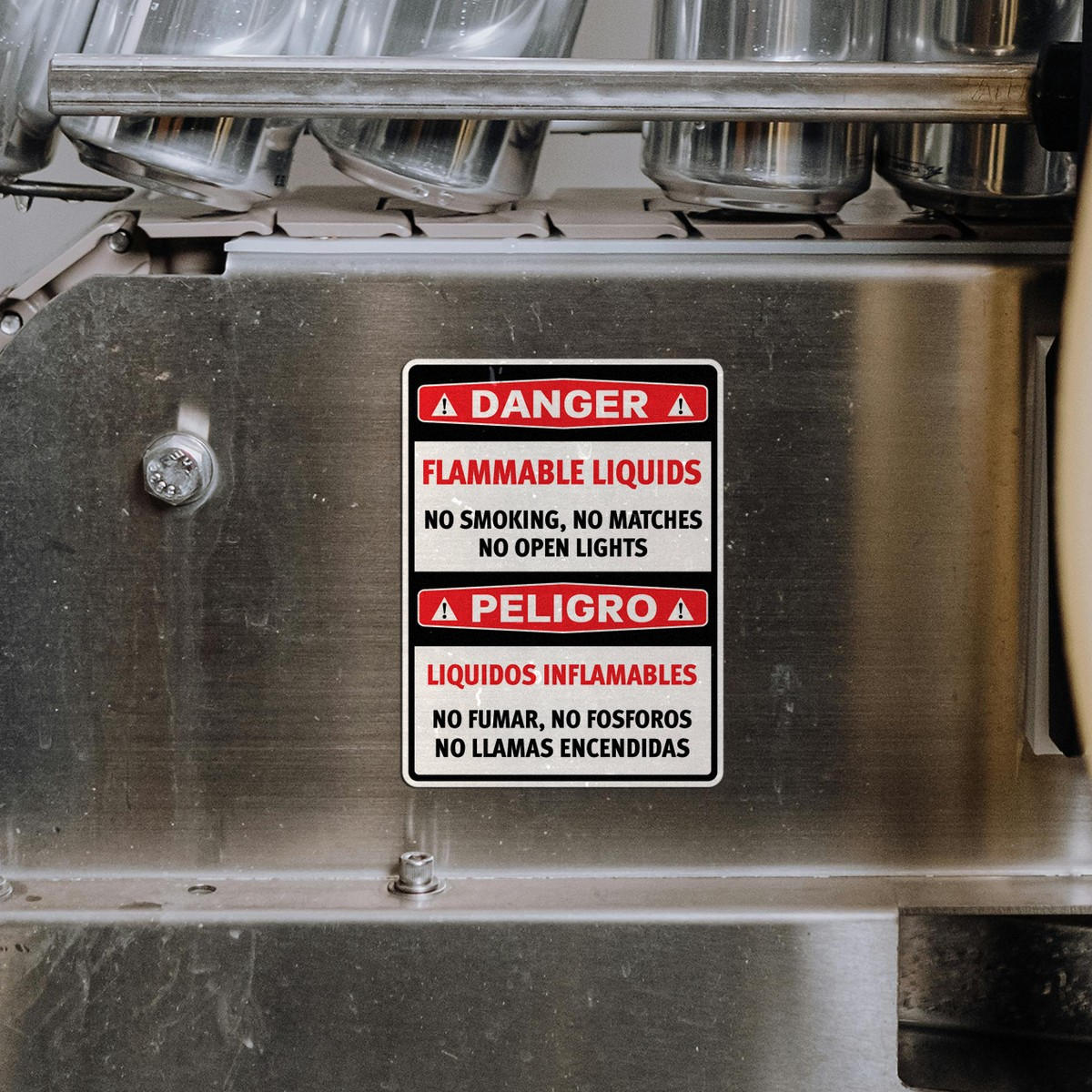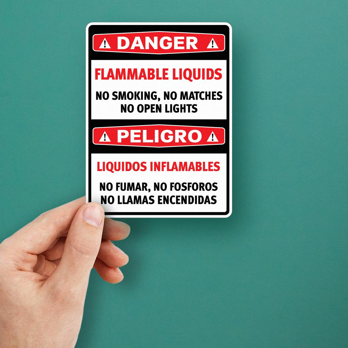 Ensure maximum safety with this bilingual “Danger Flammable Liquids” warning sticker, featuring both English and Spanish text for clear communication in diverse workplaces. Made from durable vinyl, this high-visibility safety decal is designed to withstand tough conditions, resisting water, UV rays, and wear. Perfect for industrial sites and hazardous areas, the sticker helps prevent accidents by clearly indicating the presence of flammable liquids. With an easy peel-and-stick application, it can be applied to metal, plastic, or glass surfaces without leaving any residue. Available in multiple sizes, this warning sticker ensures safety compliance and hazard awareness in any setting.