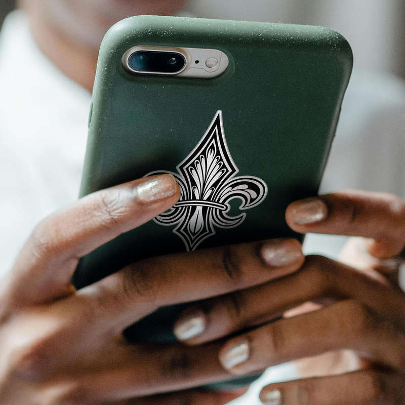 Elevate your style with this Black and Silver Fleur-de-Lis Sticker, featuring a bold yet elegant design inspired by the timeless French symbol. With its intricate black and silver detailing, this sticker makes a statement on laptops, car windows, or walls. Crafted from high-quality, weather-resistant vinyl, it retains its refined look indoors or outdoors. The peel-and-stick application ensures a hassle-free decorating experience, leaving no residue when removed. Available in multiple size options, this Fleur-de-Lis sticker is perfect for personalizing your space or gifting to anyone who loves classic designs and cultural elegance.
