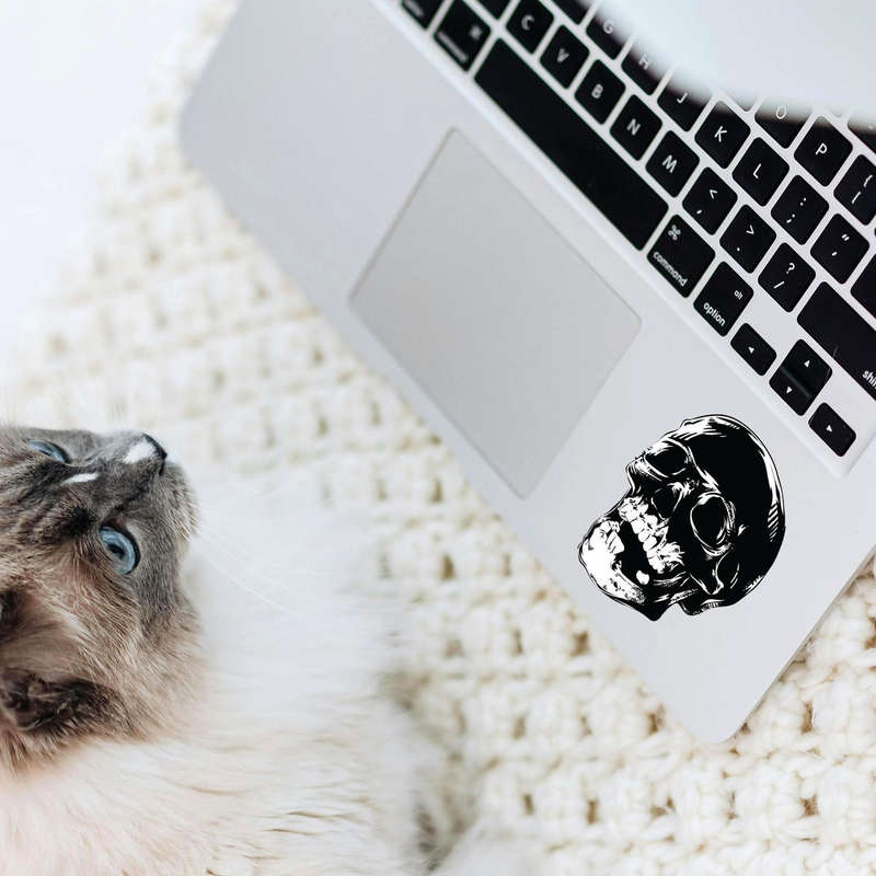 Elevate your decor and accessories with this bold black skull vinyl sticker. Designed with intricate details and a striking graphic finish, this decal brings an edgy and gothic vibe to laptops, cars, walls, and water bottles. Made from premium, weather-resistant vinyl, it guarantees durability without peeling or fading, even in outdoor conditions. Easy to apply and residue-free to remove, it offers a hassle-free way to add personality to your belongings. Available in multiple sizes, this versatile skull design is perfect for adding a dramatic touch to modern or alternative-themed spaces and accessories.