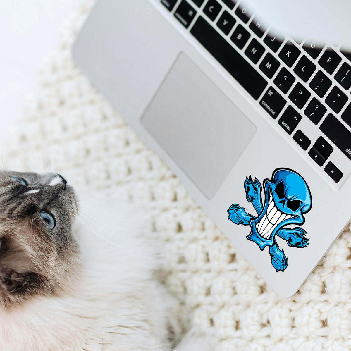 Bring a fiery edge to your personal items with this blue flame skull vinyl sticker. Featuring a bold skull design with striking blue flames, this durable decal is perfect for cars, motorcycles, laptops, and more. Crafted from premium weatherproof vinyl, it is built to last through any conditions, maintaining its vibrant colors both indoors and outdoors. Easy to apply and remove without leaving residue, this versatile sticker offers a unique way to personalize your belongings. Available in multiple size options, this skull decal is a must-have for those looking to express their rebellious spirit.