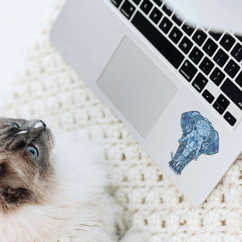 Add a touch of bohemian elegance to your belongings with this Blue Mandala Elephant Sticker. Featuring a stunning, intricately detailed elephant head adorned with vibrant mandala patterns in calming shades of blue and green, this vinyl decal combines artistic beauty with wildlife inspiration. Perfect for personalizing laptops, water bottles, notebooks, or other smooth surfaces, it offers a serene and decorative charm. Made from premium-quality, waterproof vinyl, this sticker is scratch-resistant and long-lasting, maintaining its intricate design. Available in multiple size options, it allows for versatile personalization, whether as a small detail or a bold artistic statement. Enhance your style with this unique piece of art.