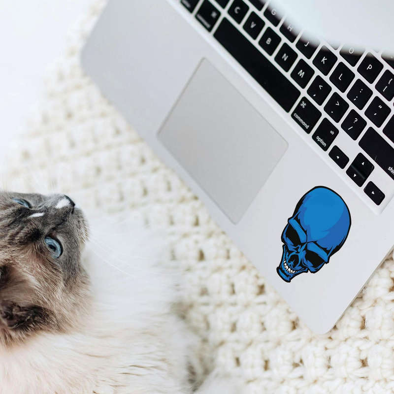 Blue Skull Sticker 💀 Striking Blue Skull Design: Featuring a bold and detailed blue skull, this sticker combines gothic style with eye-catching color for a unique and edgy look. Perfect for skull art enthusiasts! 💀