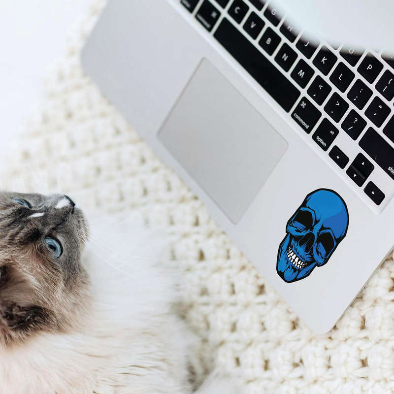 Add a vibrant edge to your decor with this bold blue skull vinyl sticker, featuring sharp black accents for a striking, gothic-inspired design. Made from high-quality weatherproof vinyl, this durable decal ensures long-lasting performance on indoor and outdoor surfaces like cars, laptops, walls, and toolboxes. Its smooth, bubble-free application and residue-free removal make it perfect for DIY enthusiasts and renters alike. Available in multiple sizes, this versatile blue skull sticker is the ultimate way to personalize your gear, adding a unique, spooky, and vibrant touch to any space.