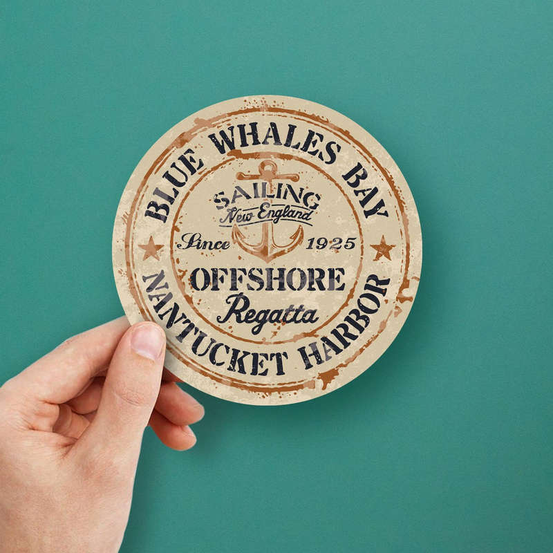 Celebrate the nautical heritage of New England with this “Blue Whales Bay” Vintage Nautical Vinyl Sticker. Featuring a distressed round design with an anchor, bold typography, and rustic texture, this decal is perfect for sailors, regatta enthusiasts, and lovers of coastal decor. Made from durable, weatherproof vinyl, it’s designed to resist fading and peeling for long-lasting vibrancy indoors or outdoors. Whether adorning cars, laptops, or home decor, this sticker adds a timeless touch of authenticity to your belongings. Easy to apply and remove without residue, it’s available in multiple sizes to meet your personalization needs.