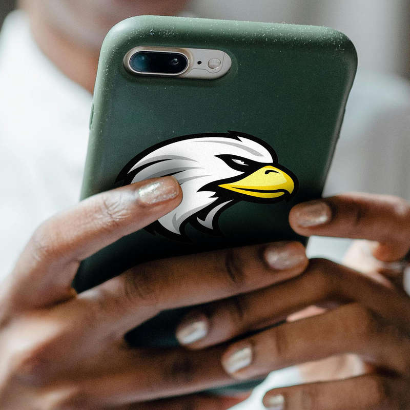 Bold Eagle Head Vinyl Sticker 🦅 Fierce Eagle Design: Make a bold statement with this striking eagle head decal, featuring a fierce and powerful design with sharp black, white, and yellow detailing. 🦅