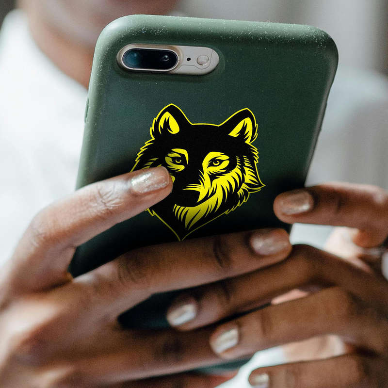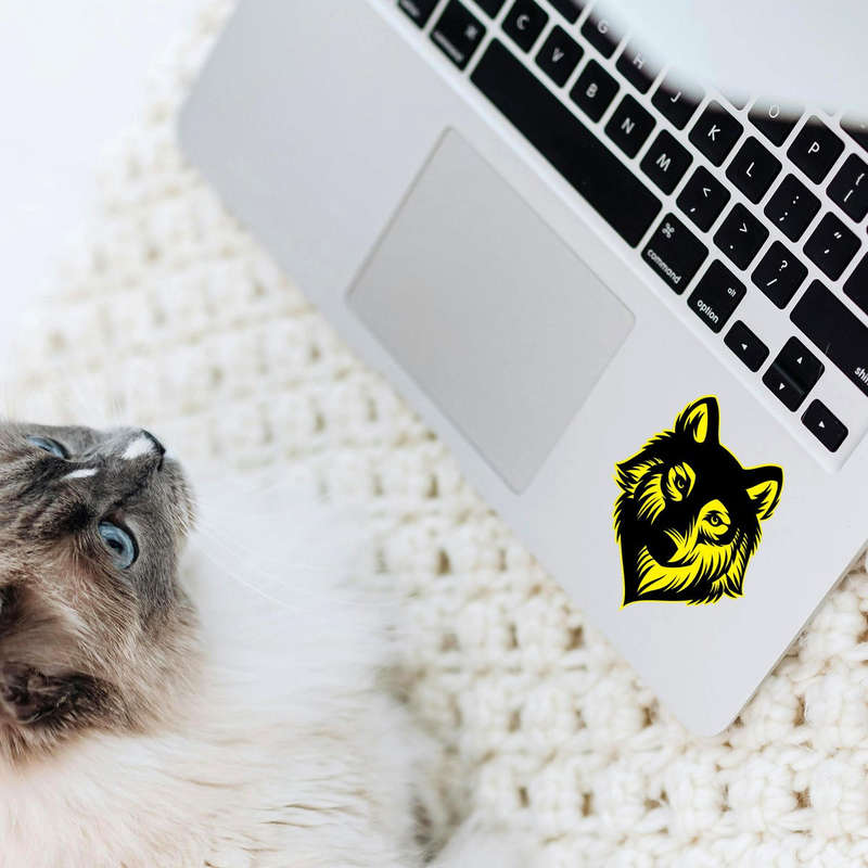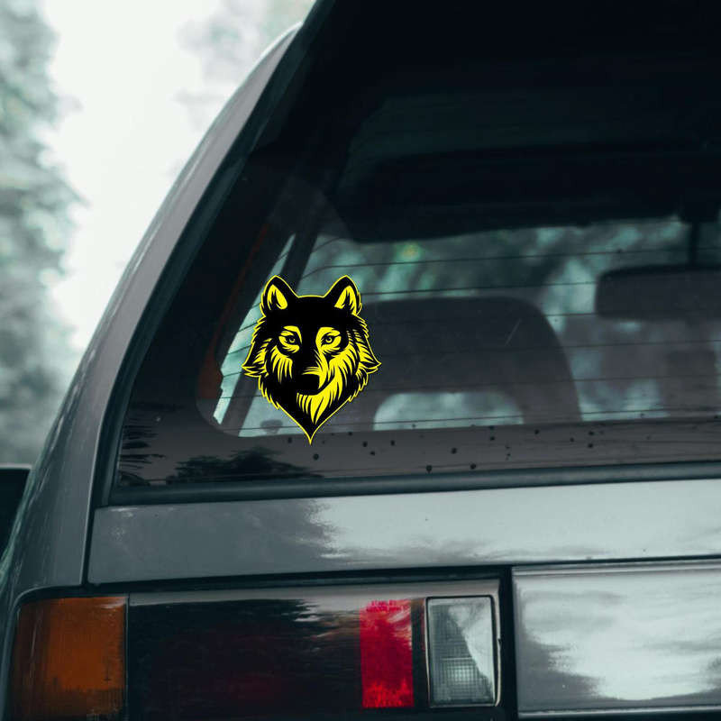 Bold Wolf Wall Decal 🐺 Powerful Wolf Design: Featuring a bold black and yellow wolf head, this striking decal adds fierce energy and personality to any space. Perfect for animal lovers and adventurers! 🐺