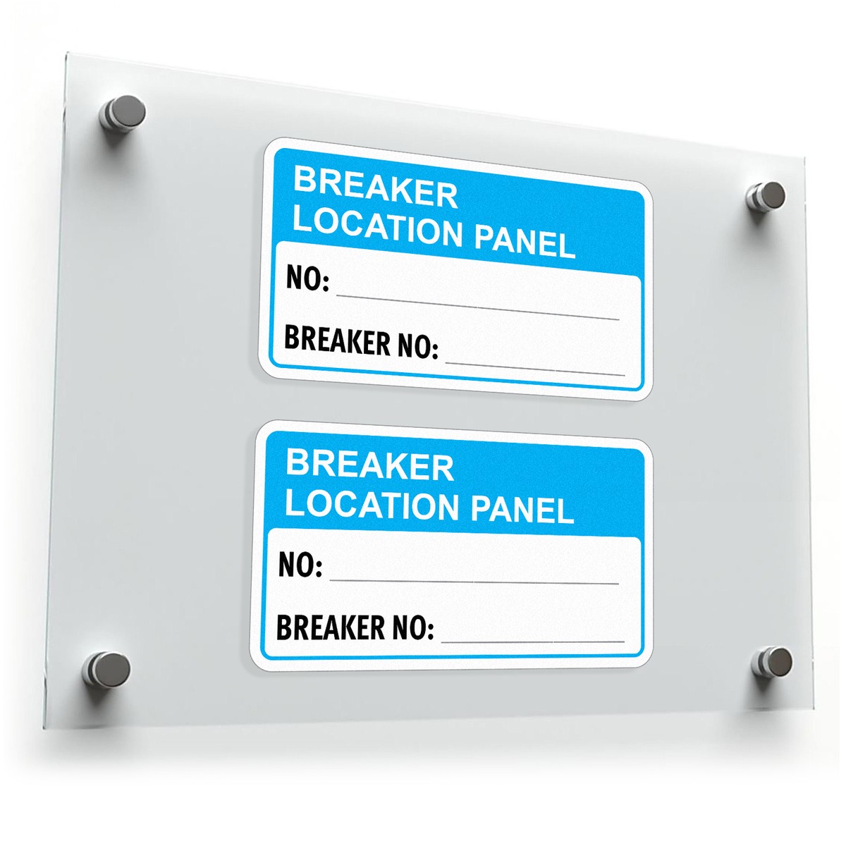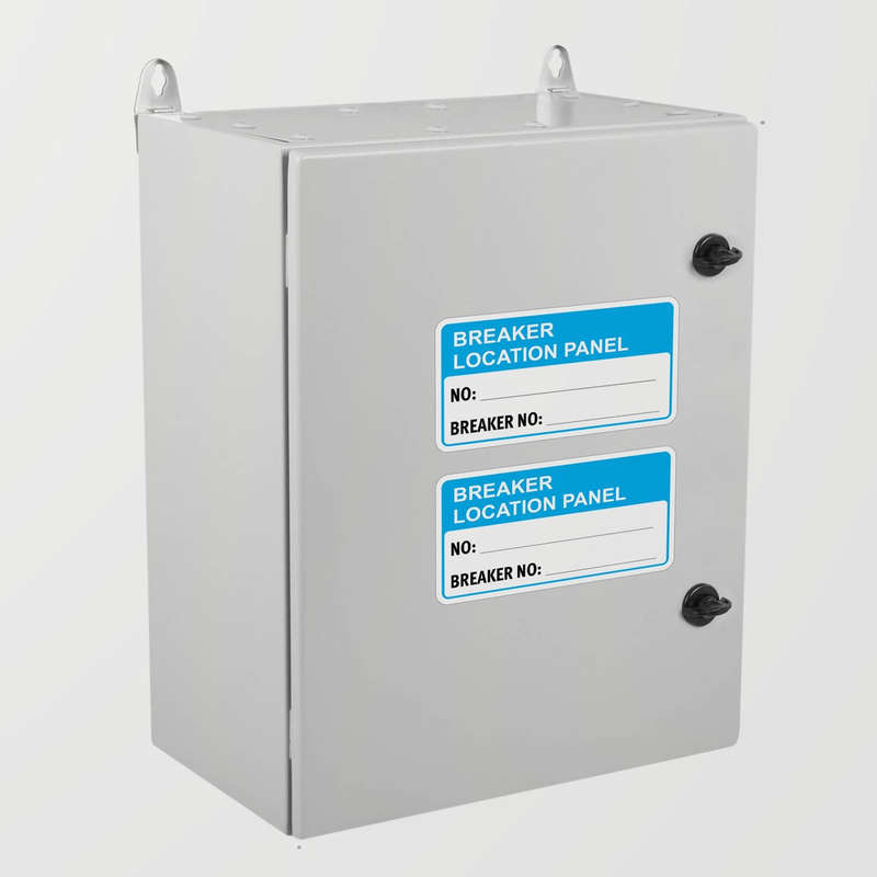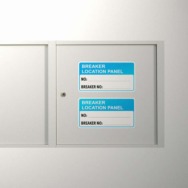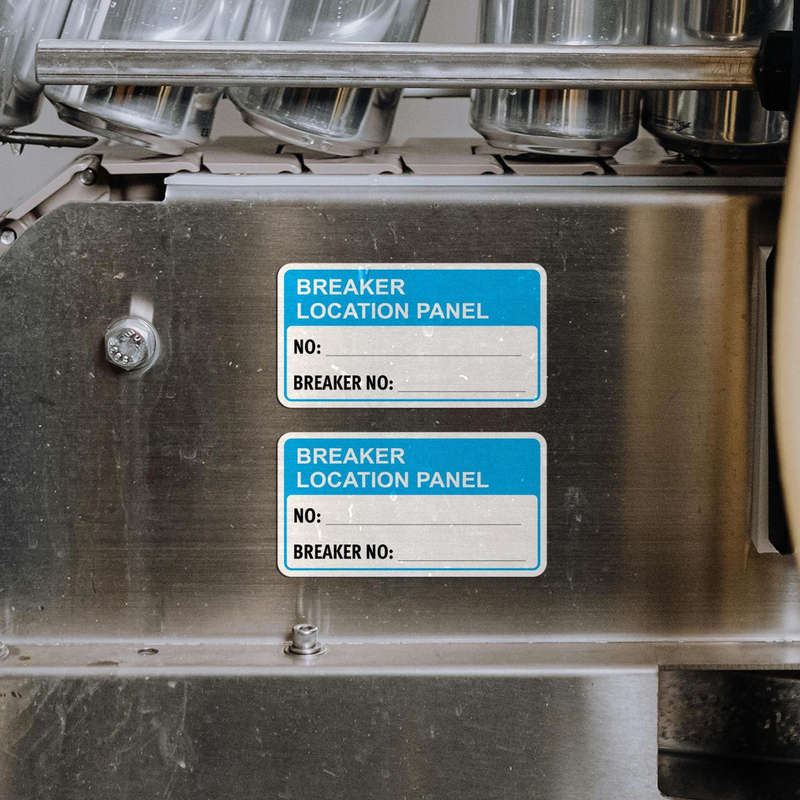 Keep electrical panels clearly labeled and organized with this set of “Breaker Location Panel” writable stickers. Designed in bold blue and white for high visibility, these durable vinyl decals feature spaces for entering panel and breaker numbers, ensuring accurate and clear identification. Perfect for use in residential, commercial, or industrial electrical systems, these stickers resist moisture, fading, and wear, providing long-lasting reliability. With a writable surface for easy customization and a convenient pack of two, these decals are a practical solution for maintaining safety and organization in any environment.