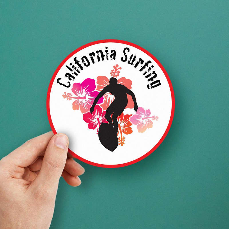 Bring a touch of Californiaβs surfing culture to your decor with this vibrant sticker. Featuring a bold surfer silhouette surrounded by tropical hibiscus flowers, this vinyl decal captures the essence of coastal adventure and sunny vibes. Crafted from durable, weatherproof vinyl, it is perfect for use on cars, laptops, or walls, resisting fading and peeling for long-lasting beauty. Its simple peel-and-stick application ensures quick and residue-free placement, offering flexibility for both temporary and permanent use. Available in multiple sizes, this sticker is the perfect way to personalize your space with a splash of tropical energy.