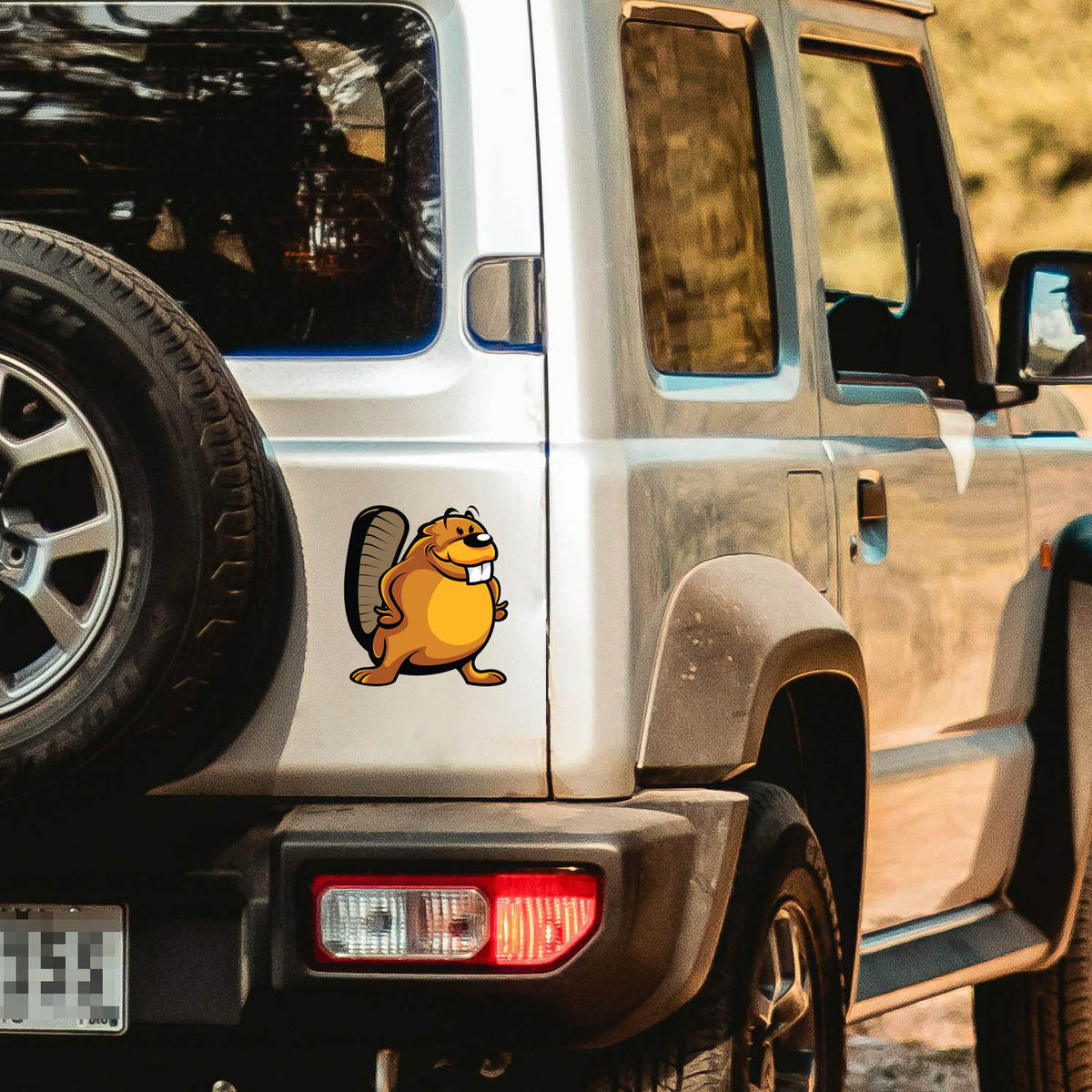 Bring a smile to your everyday items with this whimsical cartoon beaver sticker! Featuring a cheerful beaver with a big toothy grin, this decal adds a fun and playful element to your laptops, water bottles, or notebooks. Made from durable vinyl, it is designed to withstand the elements, making it suitable for both indoor and outdoor use. The bright and vibrant colors ensure this sticker stands out, while the easy-to-apply design allows for quick customization. Available in multiple sizes, this sticker is the perfect addition to your personal collection of fun, animal-themed decals.