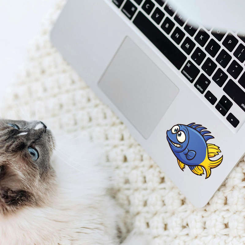 Add a touch of fun and color with this Cartoon Blue Fish Sticker! Featuring a bright blue fish with vivid yellow fins and a playful grin, this vinyl decal is perfect for kids’ rooms, laptops, water bottles, cars, and more. Crafted from high-quality waterproof vinyl, it’s durable, weatherproof, and fade-resistant, making it ideal for both indoor and outdoor surfaces. Its cheerful design appeals to kids and ocean enthusiasts alike, while the easy application and clean removal make personalization hassle-free. Whether you’re decorating a space or adding a marine-themed touch, this sticker is the perfect choice for fun and creativity.