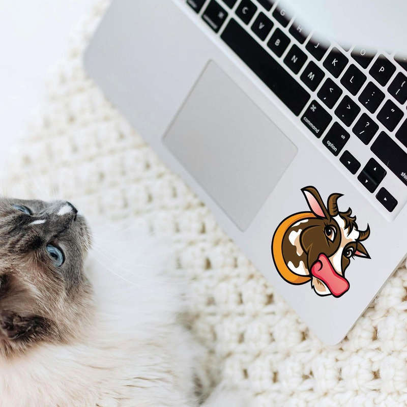 Add a cheerful touch to your space with this cartoon cow face vinyl decal. Featuring a delightful design with rich brown, white, and pink tones, this sticker is perfect for cars, laptops, or kids’ room decor. Made from durable vinyl, it resists fading and peeling, ensuring long-lasting charm. Easy to apply and remove without residue, this decal offers flexibility for both temporary and permanent use. Whether you’re decorating for a farm-themed vibe or looking for a cute and fun accent, this sticker is an ideal choice. Available in multiple sizes, it’s perfect for kids and animal lovers alike.