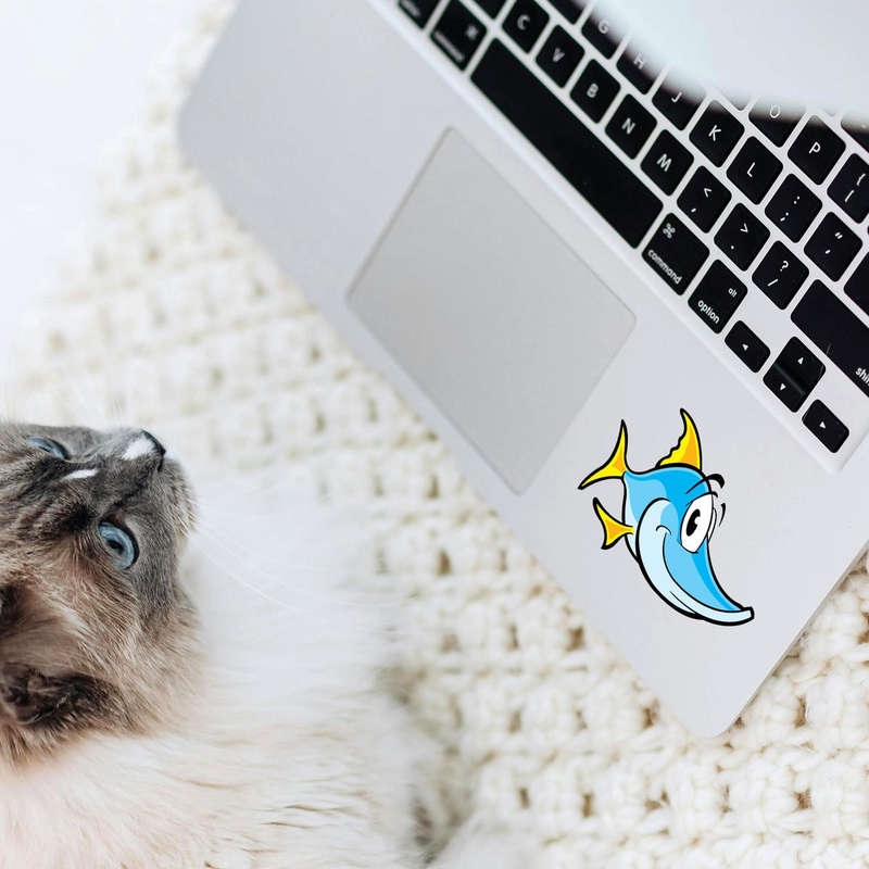 Cartoon Fish Vinyl Sticker 🐠 Playful Cartoon Design: This adorable cartoon fish sticker features vibrant blue and yellow colors, bringing a fun and cheerful vibe to any surface. Perfect for kids’ rooms, laptops, or cars! 🐠