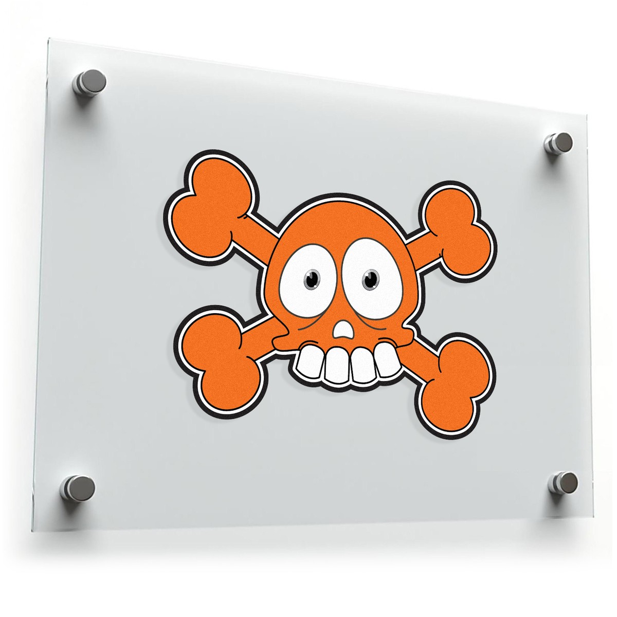 Bring a playful edge to your belongings with this cartoon skull and crossbones sticker. Featuring a fun and quirky orange skull design, this vinyl decal is perfect for customizing laptops, water bottles, cars, and more. Made from durable, weatherproof vinyl, this sticker is built to last and stay vibrant, even with outdoor exposure. The easy-apply adhesive allows for smooth application and clean removal, so you can update your style as often as you like. Available in multiple sizes, this skull sticker is the perfect way to add a fun touch to your gear.