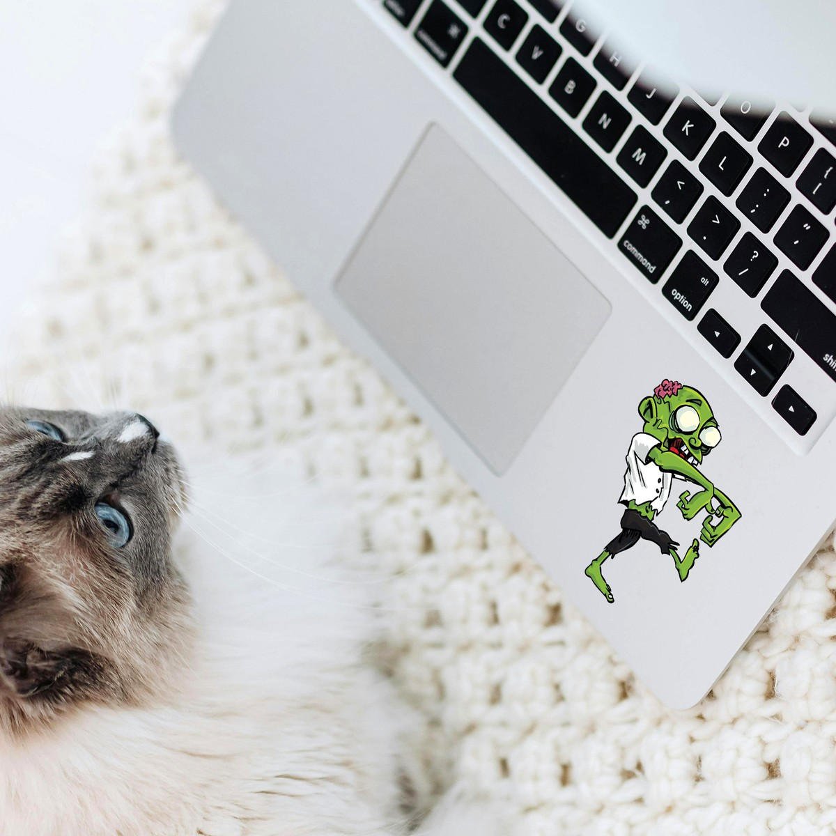 Bring some quirky, spooky fun to your space with this cartoon zombie sticker. Featuring a playful green zombie illustration, this vinyl decal is perfect for Halloween decorations or adding a bit of zombie flair to your everyday items like laptops and water bottles. Durable and waterproof, it will withstand wear and tear, making it suitable for both indoor and outdoor use. With easy peel-and-stick application, you can remove it without any sticky residue. Available in multiple sizes, this sticker is perfect for customizing your space, whether for a party or just for fun!